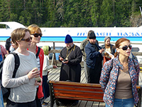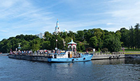 Tiistaiaamu valkeni aurinkoisena. Aamiaisen jälkeen osa lähti itsekseen tutustumaan Sortavalaan ja sen läheisyyteen, mutta suurin osa meistä, viisitoista henkinen ryhmä, suuntasi heti aamiaiselta suoraa satamaan. Satama oli aivan näköyhteyden päässä hotelliltamme ja sieltä alkoi matkamme kantosiipialuksella kohti Valamoa. Matkaa Valamoon on noin 40 km ja se kesti noin tunnin. Aluksi Laatokka esitteli kauniita kapeita kalliorantojaan ja vuonojaan, mutta myöhemmin Laatokka antoi tavalla vahvan kuvan sen koosta, sillä rantoja ei näkynyt horisontissa lainkaan. Valamon satamassa vastassa ryhmäämme oli oppaamme Svetlana – Kreivitär. Hän oli ammatiltaan myös tanssin opettaja, joten saimme kuulla mukavan rentoa ja myös paikoitellen huumorilla höystettyä kerrontaa Valamon historiasta.