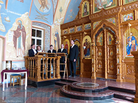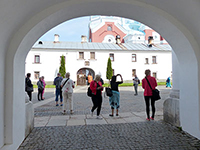Pääluostarin alueella restaurointityöt ovat jo osittain lähes valmiita, mutta muualla luostarin alueella työt olivat vielä enemmän kesken. Valamo on palautunut luostarikäyttöön 1990-luvulla ja restaurointitöitä on tehty siitä lähtien. Pääkirkossa meillä naisilla tuli olla päällä hame ja huivi, jotka saimme lainata pääkirkon, Kristuksen Kirkastuksen kirkon portilta. Läheisellä sisäpihalla savustettiin kalaa ja kuja oli eloisa tunnelmaltaan. Vietimme myös hetken kuunnellen moniäänistä kirkkomusiikkiesitystä. Lauluesitys oli vaikuttava ja laulajan voimakas basso täytti koko pienen ikonostaaseilla koristetun huoneen. Esityksen jälkeen meillä oli tovi omaa aikaa, ennen paluumatkaa.