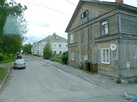 Illallisen jälkeen osa meistä suuntasi vielä kaupunkikävelylle, sillä illan hämy teki vasta tuloaan ja istuminen bussissa tuntui jaloissa. Moni suuntasi kävelynsä entiselle kaupungintalolle, joka on Sortavalan yksi kauneimpia puurakennuksia, ja nykyisin siinä toimii kaupungin keskuskirjasto. Kirjastolta eteenpäin jatkettaessa pääsi nousemaan entiselle Kisamäelle, jossa ovat 1900-luvun alussa valmistuneet poikalyseo ja tyttökoulu. Näissä rakennuksissa pystyi hyvin todentamaan, että julkisivusaneerauksen pääpaino oli ollut vain pääkadun puolella.