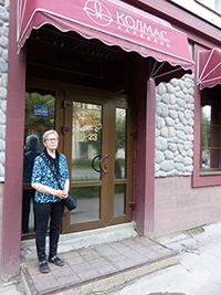 Hotelli Piipun Pihan Vanha mylly on saneerattu hotelliksi sekä yökerhoksi ja nautimme virvokkeet tuolla kyseisellä Piipun pihan kauniilla terassilla. Tämän tauon jälkeen jäi vielä omaa aikaa ennen illallista ja bussi pysähtelikin pari kertaa matkalla, jättäen porukkaa eri puolille kaupunkia ostoksille ja osa jatkoi hotellilta puunveistäjä Kronid Gogolevin näyttelyyn.